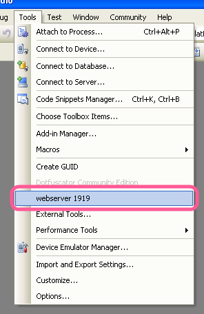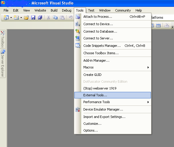 A while ago in a project we had the requirement to assign a static port number to our asp.net website project. The very first thing came to my mind was that we just can assign static port number to asp.net web application project type and we cannot assign a static port to asp.net web site project. Anyway I started searching in the internet for a solution to make sure about it. I spent quit a long time looking for an answer but I could not find any almost everywhere it was mentioned that we cannot assign a static port to a asp.net website and it is constrained to use dynamic port.I was convinced at the time and we managed to convert to asp.net web application. Surprisingly recently a friend of mine, Ali, referred a perfect solution for this issue to me and I thought it’s worth sharing with you. Step 1- the very first step is to add the asp.net Web Server external tool to Visual Studio. To do so