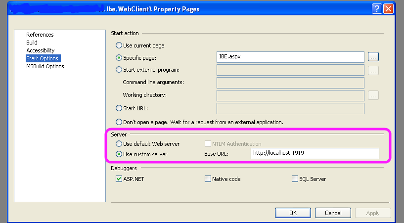 You can configure build options Visual Studio 2005 for when you run the site: build the site, an individual page, or nothing at all. In the last case, when you run a Web site, Visual Studio simply launches the browser and passes to it the current or start page. The request then invokes ASP.NET dynamic compilation. Because pages are compiled dynamically and compiled into different assemblies as needed, it is not required that the entire project compile successfully in order to run and debug a page.By default, Visual Studio completely compiles Web site projects whenever you run or debug any page. This is done to identify compile-time errors anywhere in the site. However, a complete site build can significantly slow down the iterative development process, so it is generally recommended that you change the build project option to compile only the current page on run or debug. |